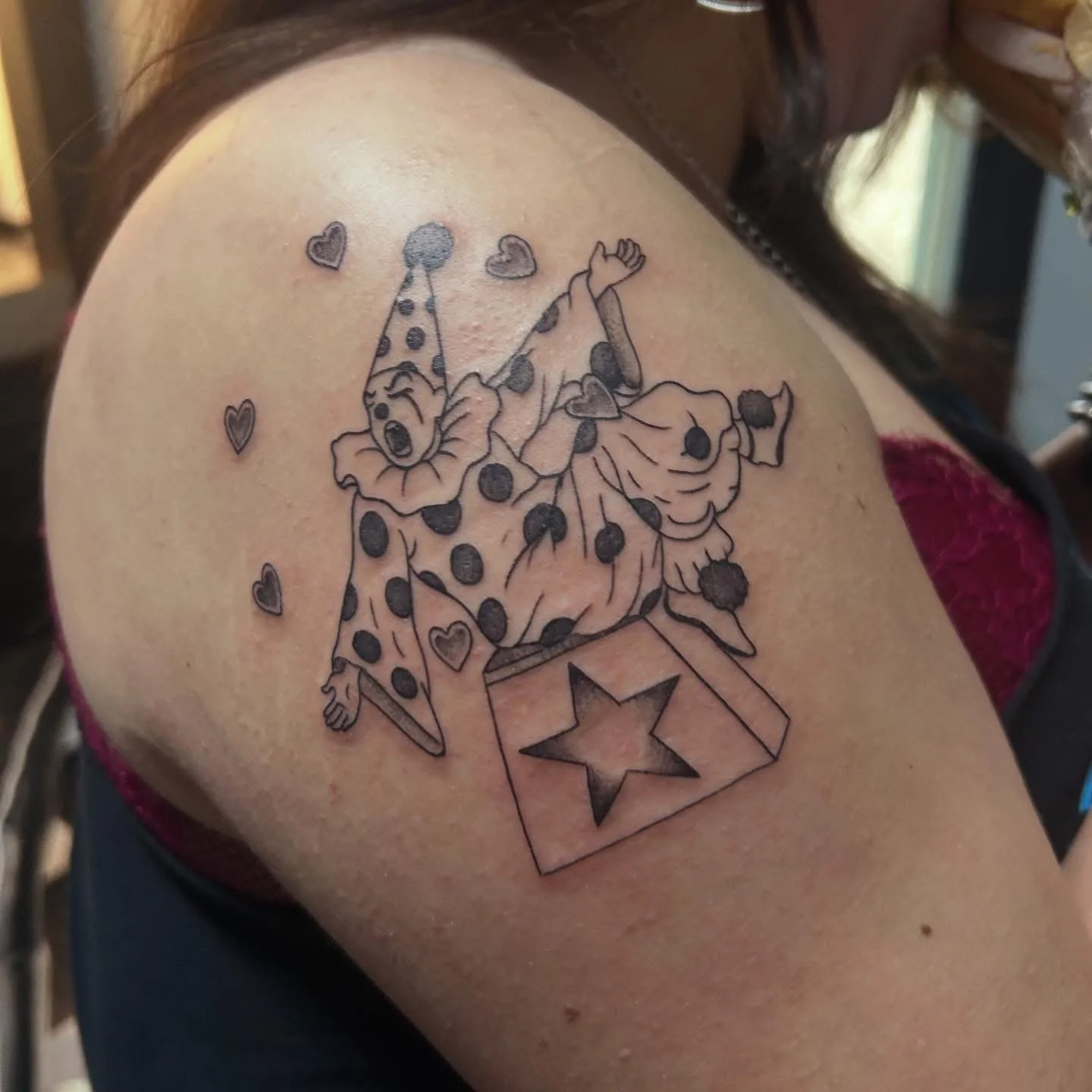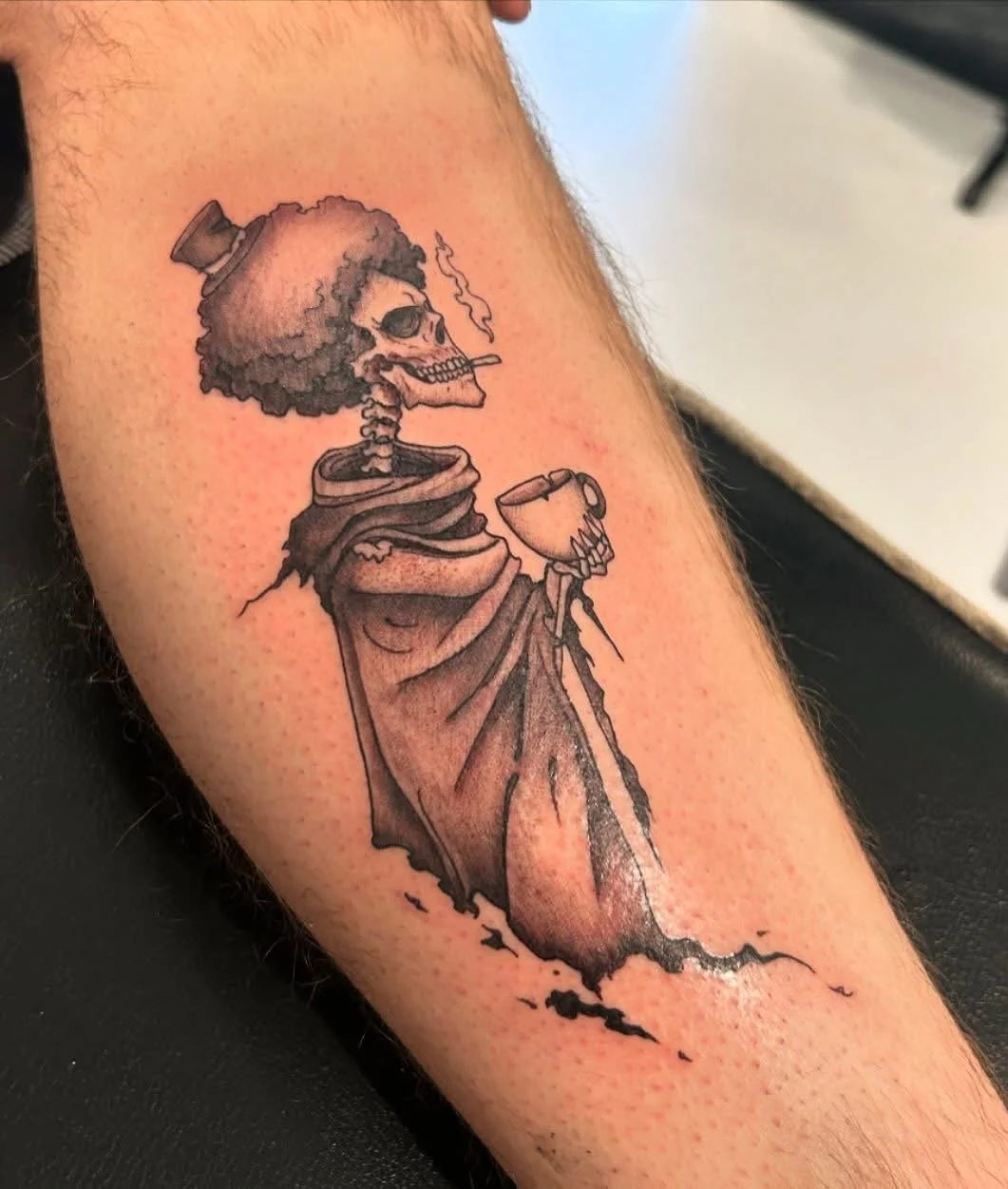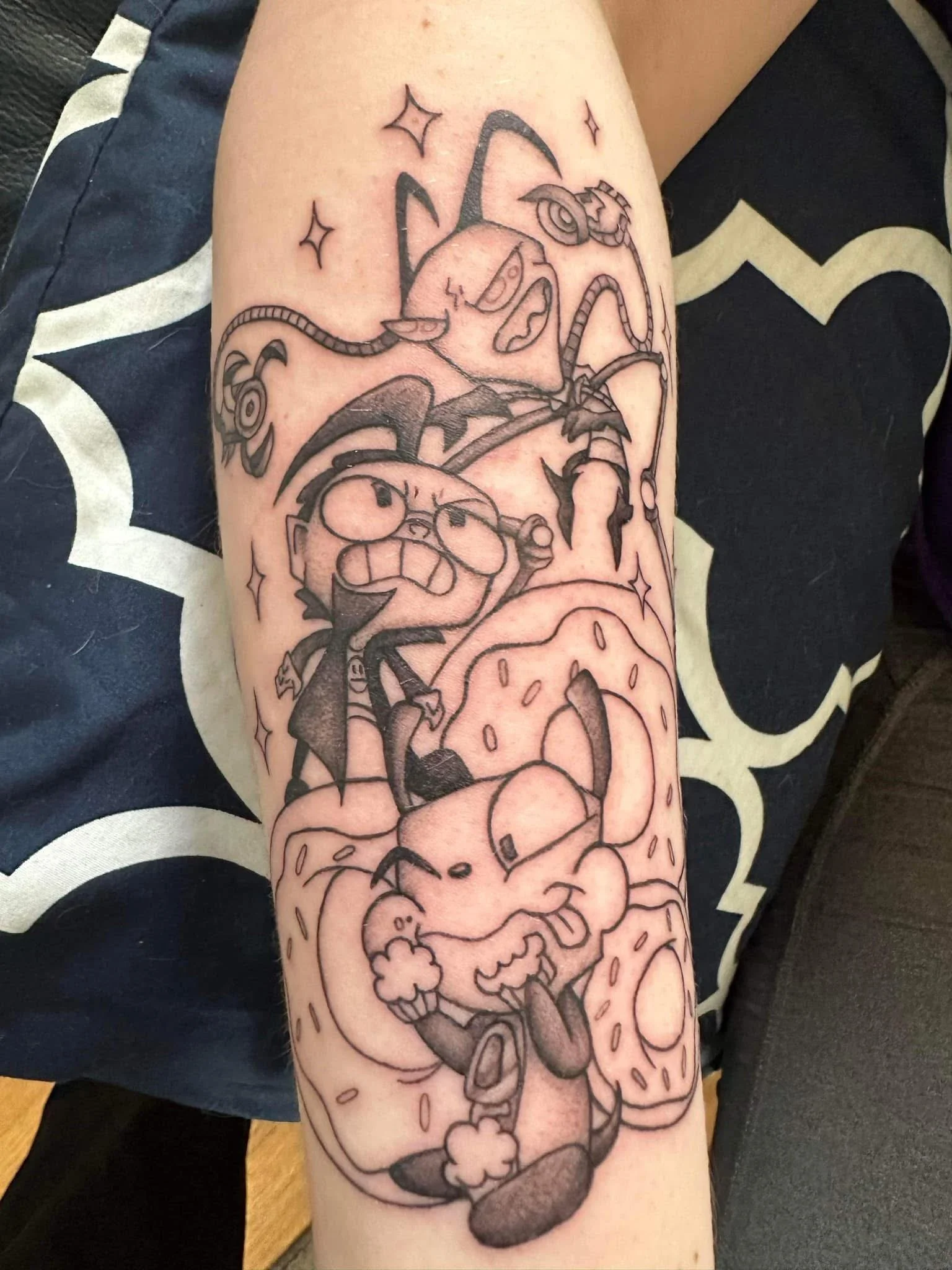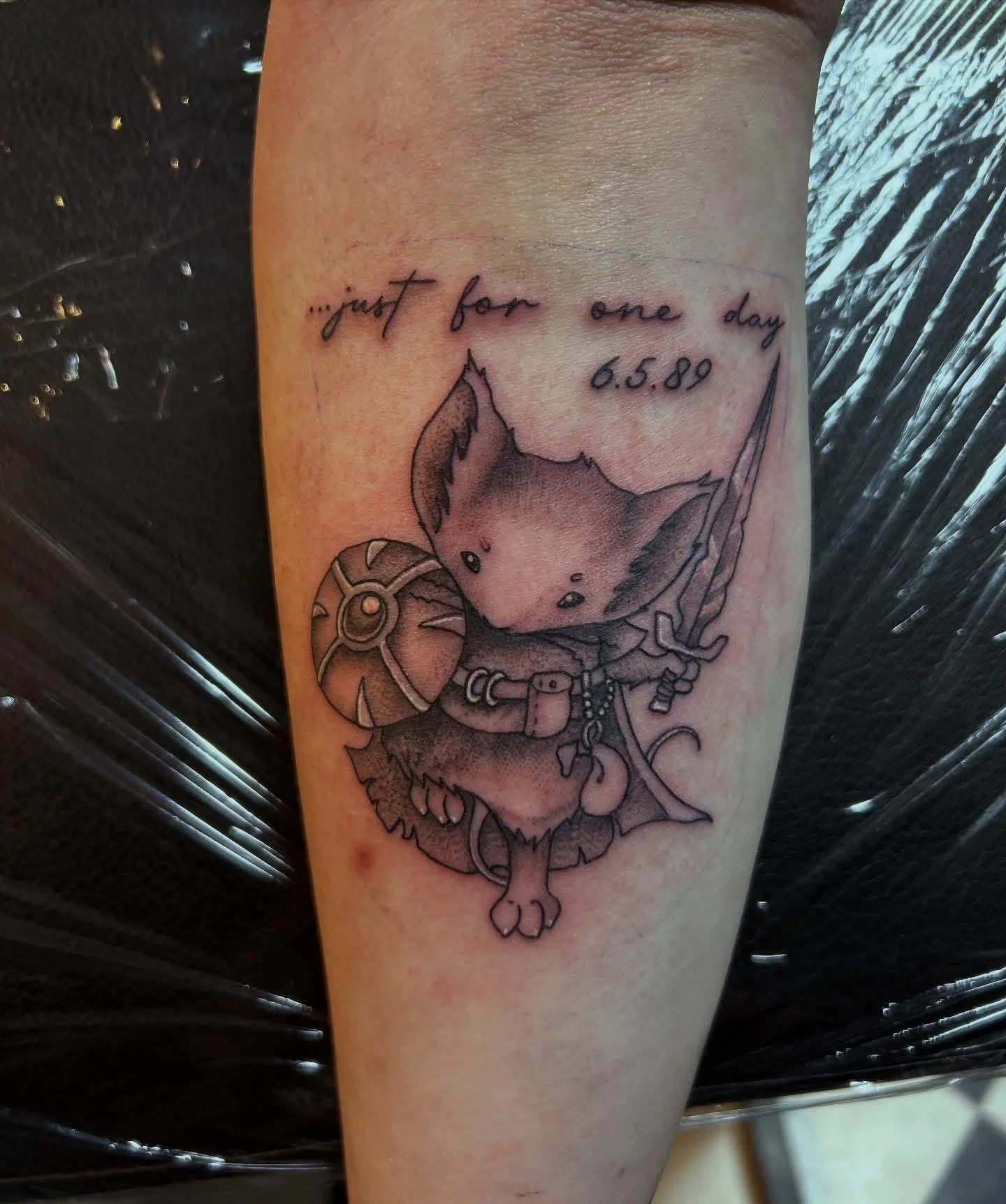 If you ask her what her favourite concepts are she will arrive at horror, landscapes, traditional, and her specialty - cartoons. Skye loves working with colour and has a blended, evolving style of new school mixed with old school; you can count on her for those pieces that pop off the skin!